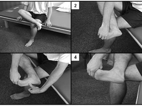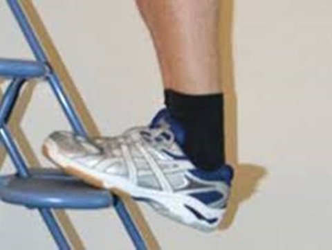 1-پنجه پا را روی صندلی یا لبه پله قرار داده و پاشنه پا را به سمت پایین حرکت می دهیم.