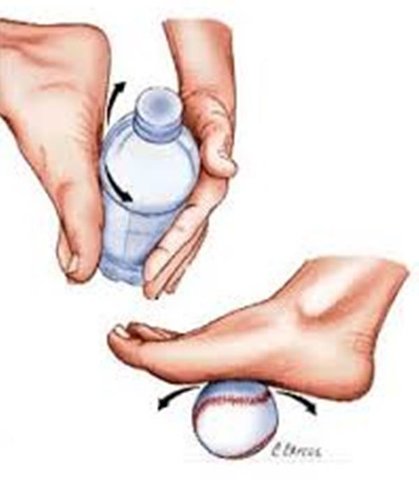 2- شئی استوانه ای یا گرد مانند بطری یا توپ تنیس را روی زمین قرار داده و پا را روی آن بغلطانید. می توان برای ایجاد مقاومت بجای زمین از دستها کمک گرفت.