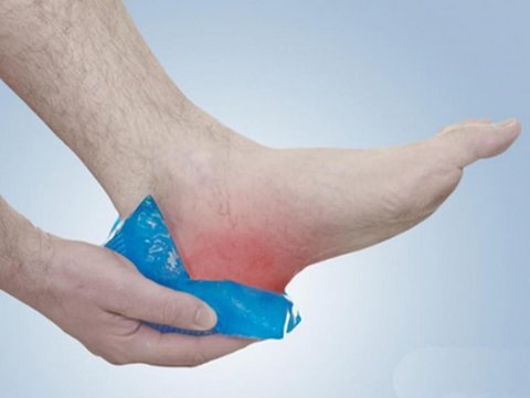 -استفاده از یخ (به مدت 20 دقیقه کف پا و منطقه پاشنه ماساژ داده شود)