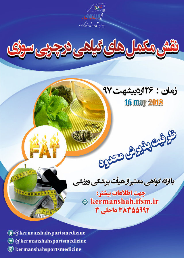 بر اساس اعلام کمیته آموزش و پژوهش کرمانشاه، ثبت نام کارگاه آموزشی با عنوان نقش مکمل های گیاهی در چربی سوزی آغاز شد.