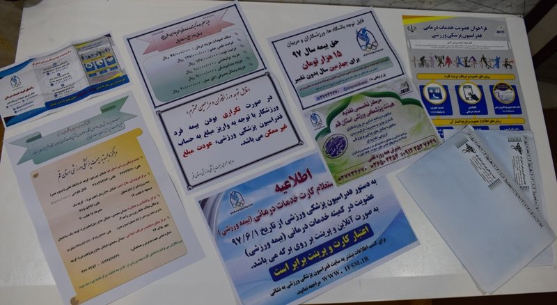 با همت کمیته روابط عمومی بیش از ۲۵۰ پک اطلاع رسانی و ۱۰۰۰ بروشور راهنمای استفاده از خدمات کمیته خدمات درمانی به کلیه اماکن ورزشی استان قم توزیع شد.