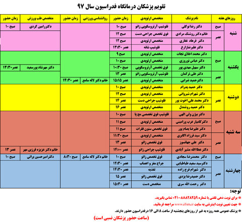 ساعت ۱۲ دکتر روشنک مرادی(فوق تخصص جراحی دست) -دکتر فرهاد غفاری(متخصص ارتوپدی)