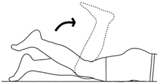 به سمتی بخوابید که پای سالم زیر و پای مبتلا رو باشد. زانوی سالم را خم کنید به طوری که ران سالم در جای خود صاف و نکیه گاه پای مصدوم باشد. پای مبتلا را در حالی که صاف و و کشیده است بالا ببرید و پس از ۵ تا ده ثانیه پایین آورید. این تمرین را سه نوبت در روز و هر نوبت ده بار تکرار کنید.