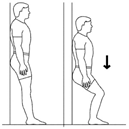 ازپشت به دیوار تکیه داده و زانو را ۳۰ درجه خم کنید، به سمت پایین حرکت کنید و سپس آهسته به سمت بالا برگردید. این تمرین را روزی ۳ نوبت و هر نوبت ده بار تکرار کنید.