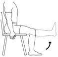 در حالی که روی صندلی نشسته اید یک پارا صاف کرده و بالا بیاورید و به مدت ۵ تا ۱۰ ثانیه نگه دارید و سپس به وضعیت شروع تمرین برگردید. برای هر دو زانو این تمرین را سه نوبت در روز و در هر نوبت ده بار تکرار کنید.