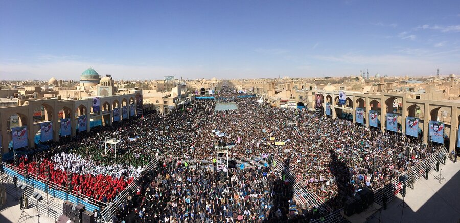 حسن روحانی، رییس جمهور، یکشنبه ۱۹ آبان وارد استان یزد شد و در میدان امیرچخماق مورد استقبال مردم قرار گرفت.
