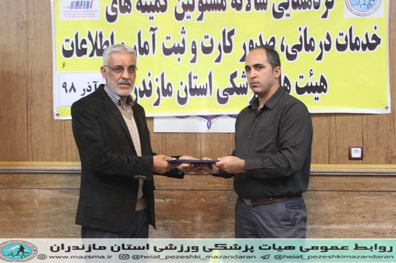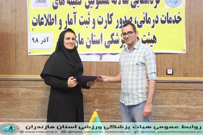 در پایان زحمتکش مسئول کمیته خدمات درمانی استان به ارائه توضیحاتی در خصوص جمع آوری مدارک، جمع بندی و ارسال به موقع به منظور افزایش رضایتمندی ورزشکاران و کیفیت خدمات رسانی بهتر پرداخت و به سوالات کاربران خدمات درمانی شهرستان ها پاسخ داده شد. در انتها از فائض دارابی مسئول کمیته خدمات درمانی شهرستان چالوس و دل آرا نژادمقدم مسئول ثبت و صدور کارت خدمات درمانی شهرستان تنکابن بعنوان کاربران برتر غرب استان تقدیر شد.