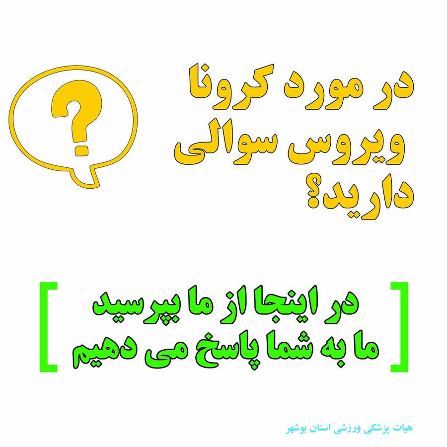 هیات پزشکی ورزشی استان بوشهر در راستای آگاهی بیشتر هم استانی ها و ورزشکاران اقدام به راه اندازی سیستم پرسش و پاسخ در رابطه با کروناویروس جدید کرده است.