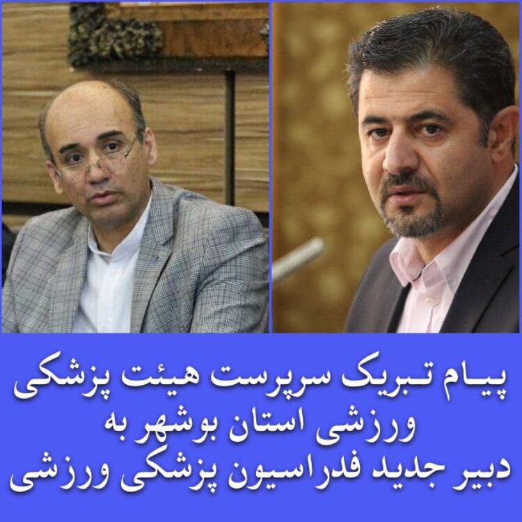 پیـام تـبریک سرپرست هیئت پزشکی ورزشی استان بوشهر به دبیر جدید فدراسیون پزشکی ورزشی