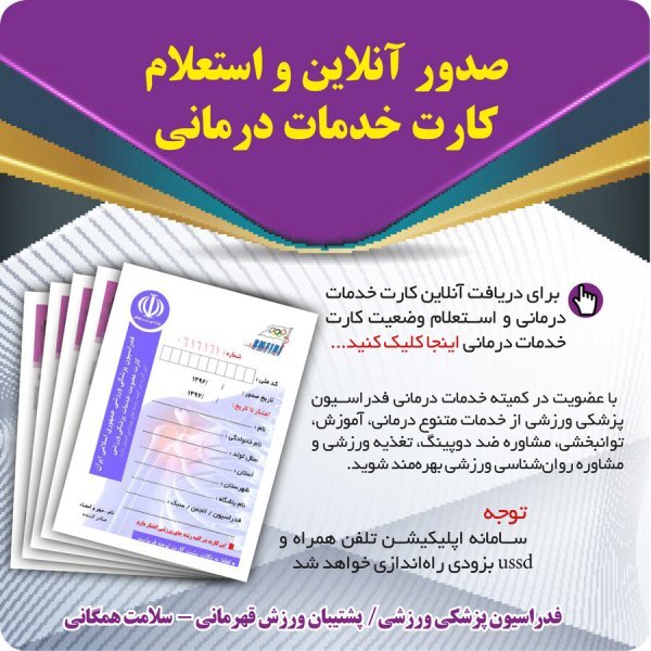 کلیه ورزشکاران می توانند از طریق سامانه پیامکی و یا بر اساس ویدئو آموزشی از اعتبار تاریخ کارت عضویت کمیته خدمات درمانی فدراسیون پزشکی ورزشی اطلاع یابند