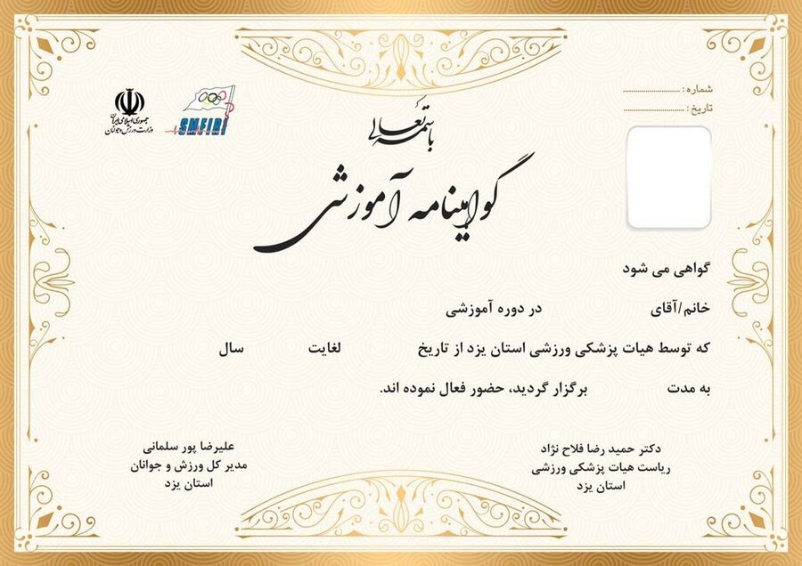 به اطلاع دانش پذیران دوره تغذیه ورزشی میرساند جهت دریافت گواهی شرکت در دوره می توانند با در دست داشتن مدرک شناسایی، به هیئت پزشکی مراجعه و گواهی خود را دریافت نمایند.