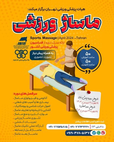 کمیته آموزش هیأت پزشکی ورزشی استان تهران با همکاری فدراسیون پزشکی ورزشی دوره آموزشی ماساژ ورزشی را برگزار می کند.
