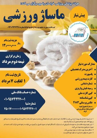 آزمون پیش نیاز ماساژ ورزشی: ۲۴ شهریور راس ساعت ۱۲ ظهر