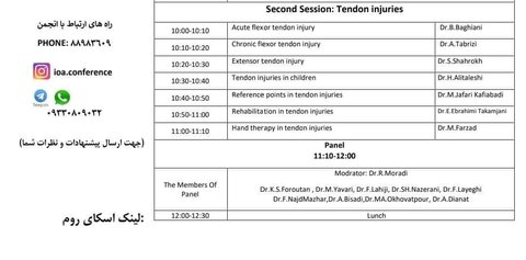 در این راستا روز پنج شنب اول آذر ساعت ۱۰ تا ۱۳ جلسه ای در مورد ترمیم آسیب های تاندون های دست با حضور اساتید در انجمن ارتوپدی ایران برگزار می شود.
