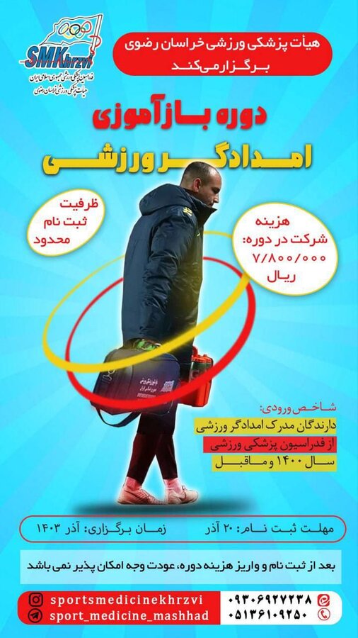 ۲- زمان و مکان برگزاری متعاقبا از طریق کانال تلگرام و پیج اینستاگرام هیات پزشکی ورزشی استان اطلاع رسانی خواهد شد.