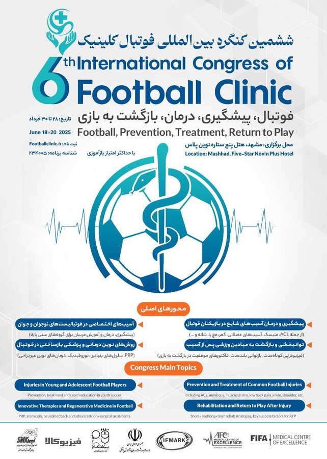 همکاری هیات پزشکی ورزشی خراسان رضوی با کلینیک تخصصی پزشکی ورزشی ایفمارک، در ششمین کنگره فوتبال کلینیک