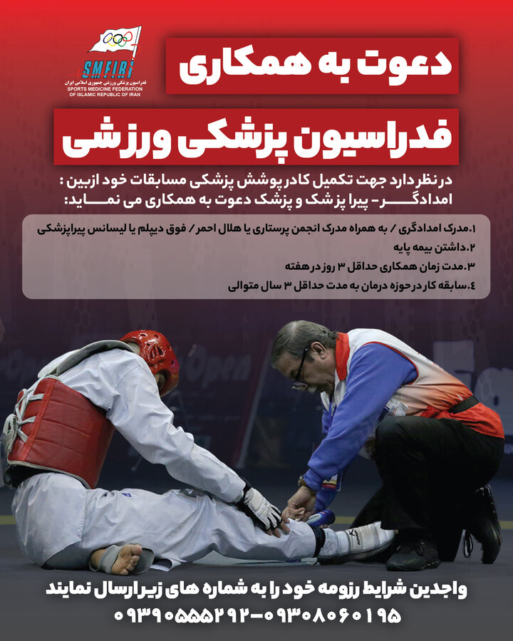 فدراسیون یزشکی ورزشی قصد دارد برای تکمیل کادر یوشش یزشکی مسابقات از افراد واجد شرایط دعوت به همکاری نماید.