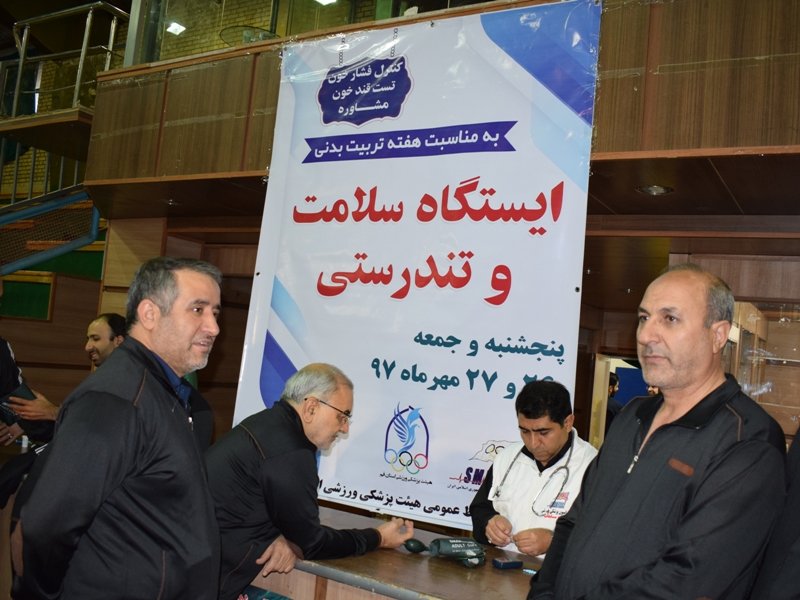 انجام تست قند و فشار خون در اولین روز از هفته تربیت بدنی با حضور استاندار و مدیران دستگاه های اجرایی و جمع کثیری از علاقمندان در همایش صبحگاهی انجام شد