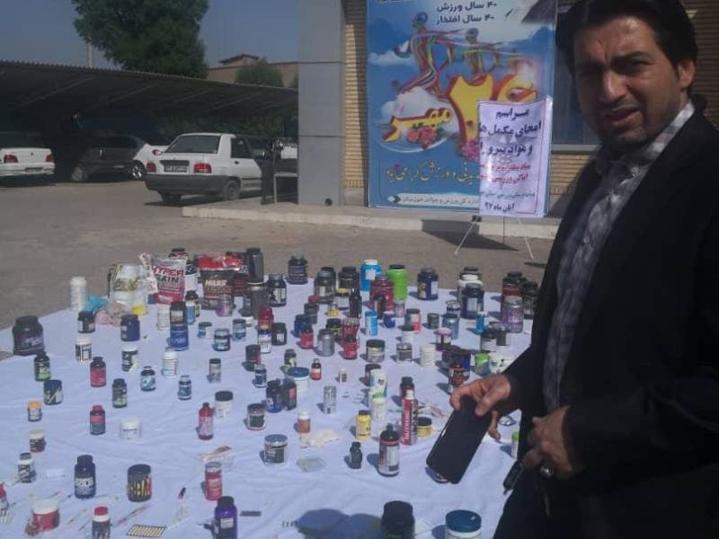 مراسم امحاء مواد نیروزا، مکمل‌ها و داروهای غیرمجاز در روز چهارشنبه دوم آبانماه با حضور مدیر کل ورزش و جوانان و رئیس هیات پزشکی ورزشی ودیگر مسئولین در ورزشگاه تختی اهواز برگزار شد