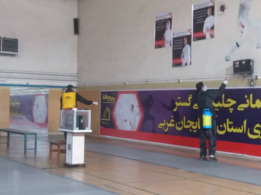 ضدعفونی کردن مجموعه ورزشی تختی ارومیه توسط هیات پزشکی ورزشی