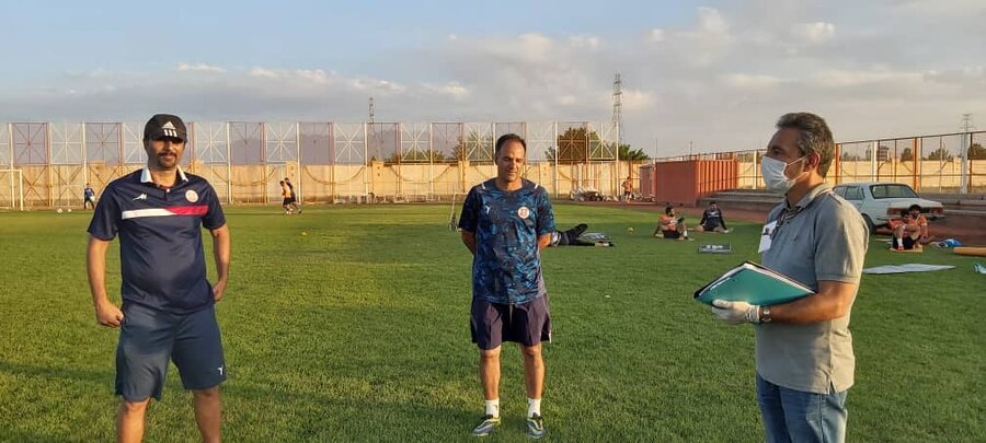 حضور افسران کنترل سلامت هیأت پزشکی ورزشی استان کرمان درتمرینات تیم مس، جهت نظارت بر اجرای پروتکل های بهداشتی ارائه شده توسط سازمان لیگ فدراسیون فوتبال