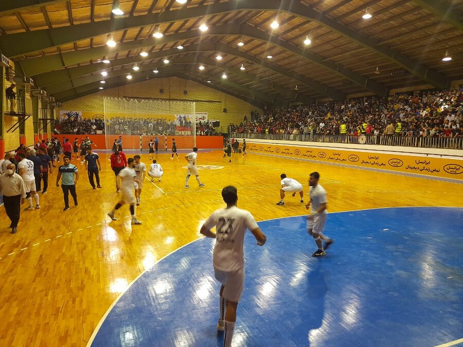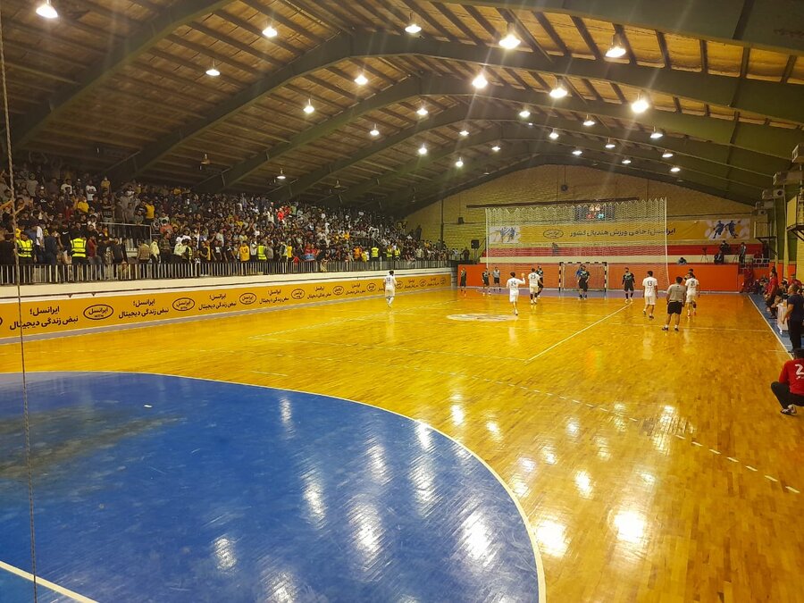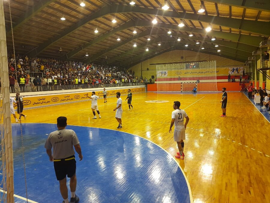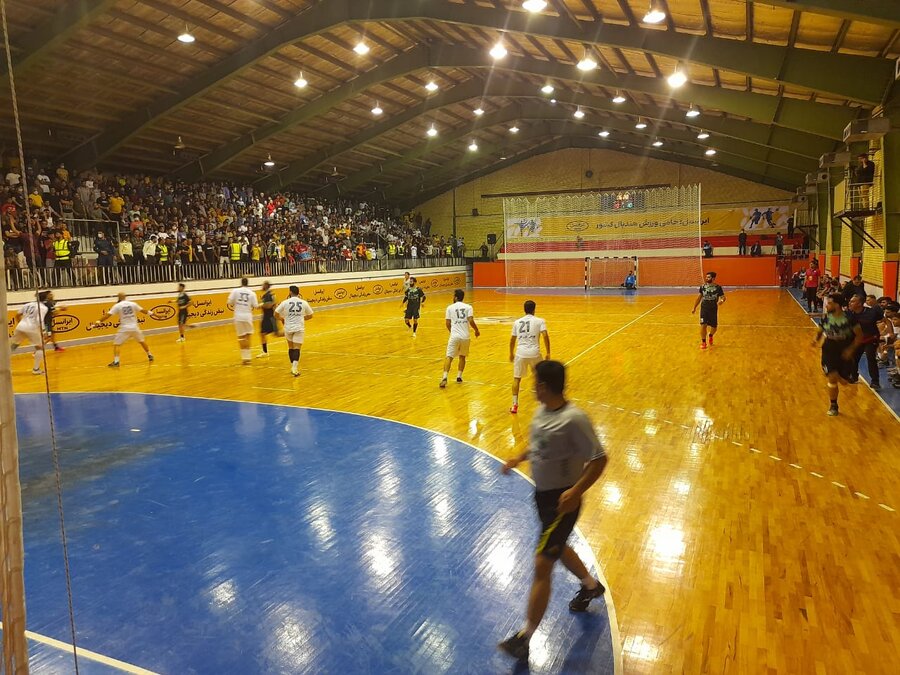 دیدار تیم های هندبال نیروی زمینی شهید شاملی کازرون و ذوب آهن اصفهان در مرحله پلی آف لیگ برتر با حضور دکترغلامرضا نوروزی رئیس فدراسیون پزشکی ورزشی یک شنبه شب در شهرستان کازرون استان فارس برگزار شد