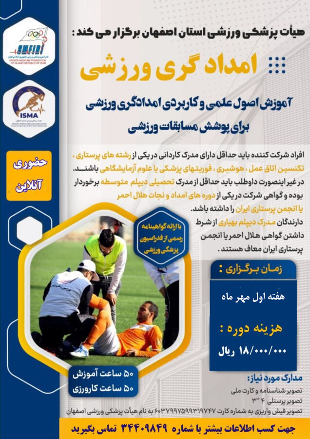 هیات پزشکی ورزشی استان اصفهان،دوره اصول علمی و کاربردی امدادگری ورزشی را برگزار می کند.