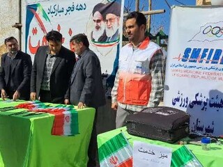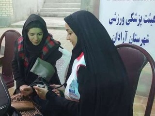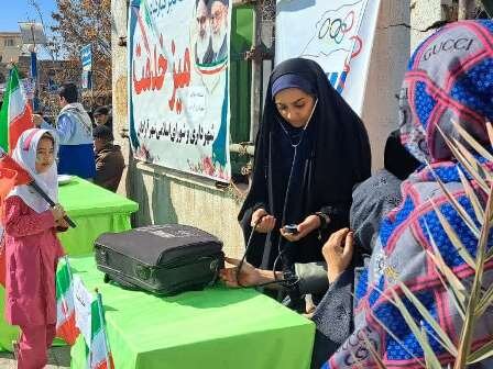 برپایی ایستگاه سلامت هیات پزشکی ورزشی آرادان در جشنواره آشپزی اشکنه در روستای پاده و راه پیمایی ۲۲ بهمن در آرادان