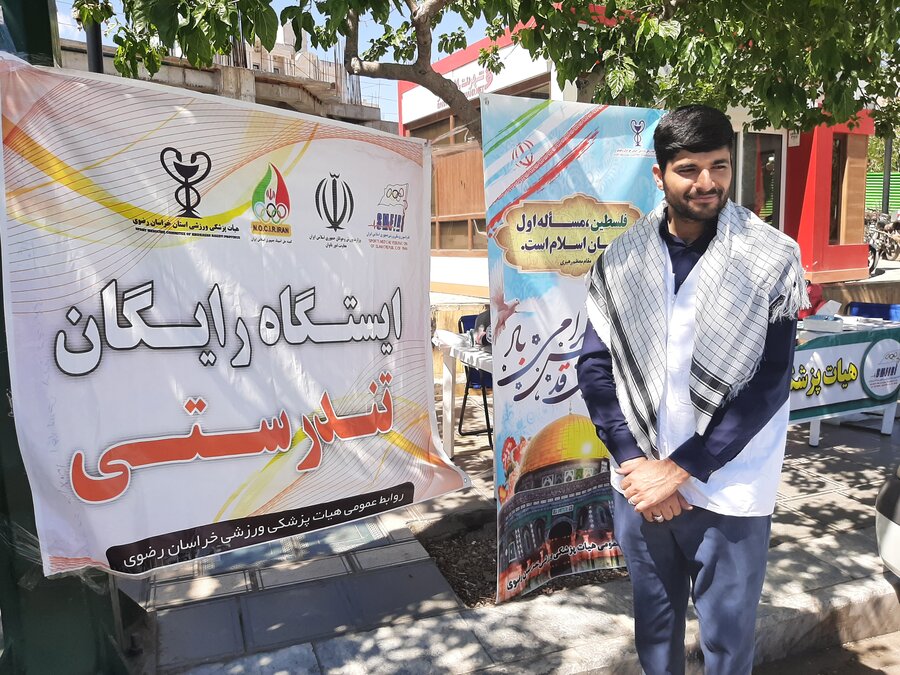 هیات پزشکی ورزشی خراسان رضوی همگام با آحاد مردم در راهپیمایی بزرگ روز جهانی قدس، با برپایی ایستگاه تندرستی و سلامت حضور یافت.
