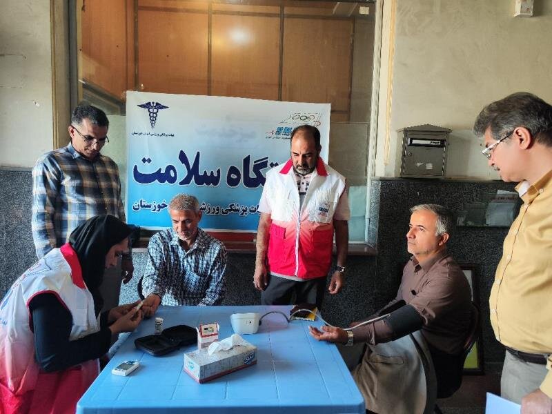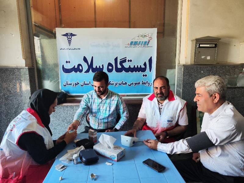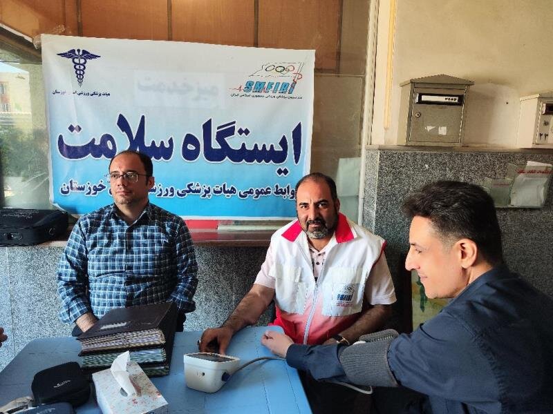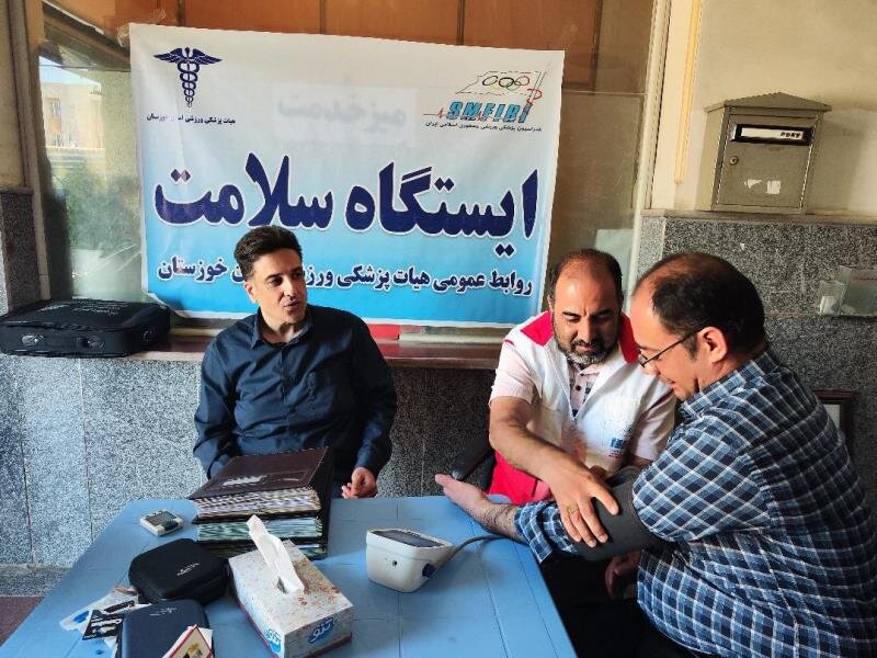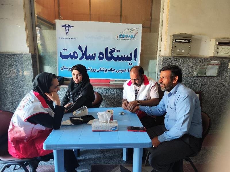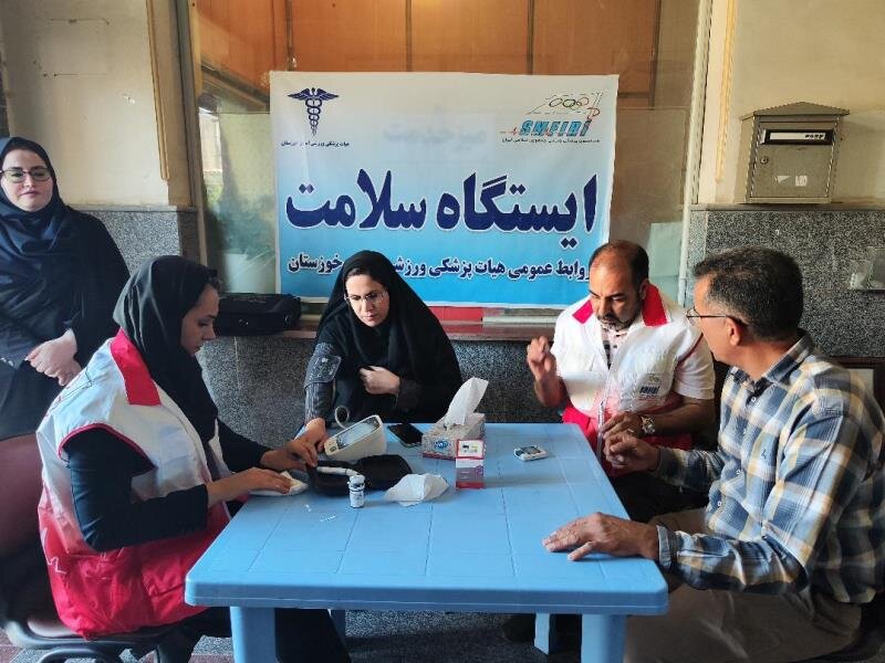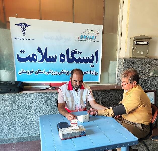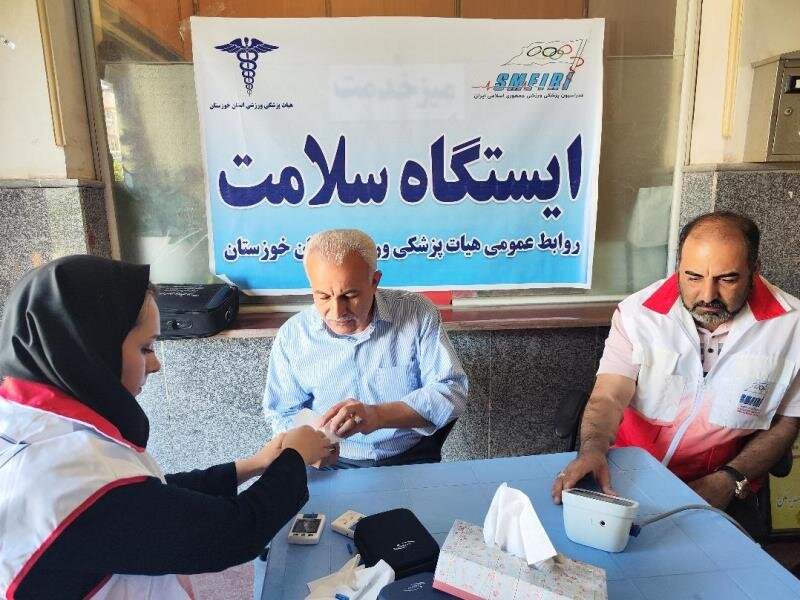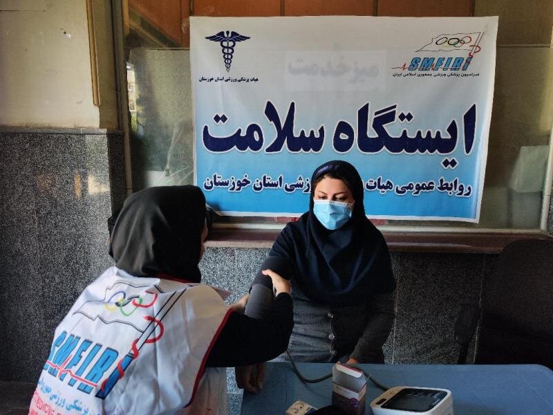 ایستگاه رایگان سلامت به مناسبت هفته سلامت در خوزستان برپا شد تا به شهروندان و ورزشکاران خدمات پزشکی ارائه شود.