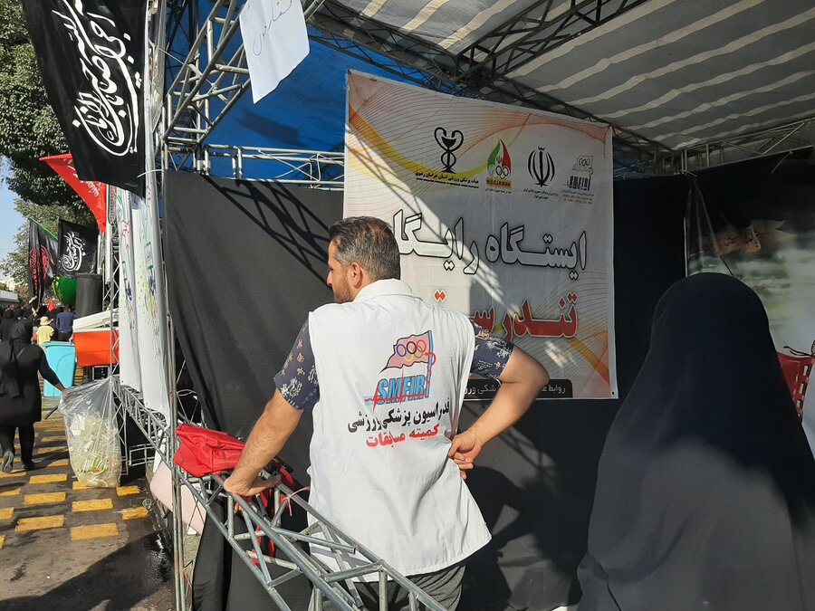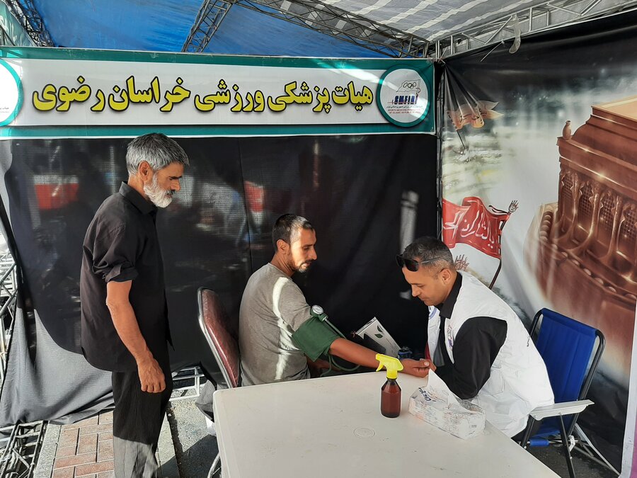 هیات پزشکی ورزشی خراسان رضوی در مسیر راهپیمایی جاماندگان اربعین حسینی ایستگاه رایگان تندرستی برپا کرد