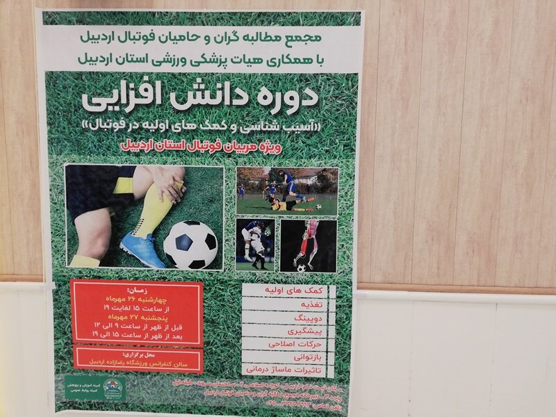 کارگاه احیاء و کمکهای اولیه، تغذیه ورزشی به همت هیات پزشکی ورزشی استان اردبیل و به مدرسی دکتر کمال نوراله زاده رئیس هیات در سالن کنفرانس مجموعه رضازاده اردبیل برگزار شد