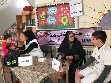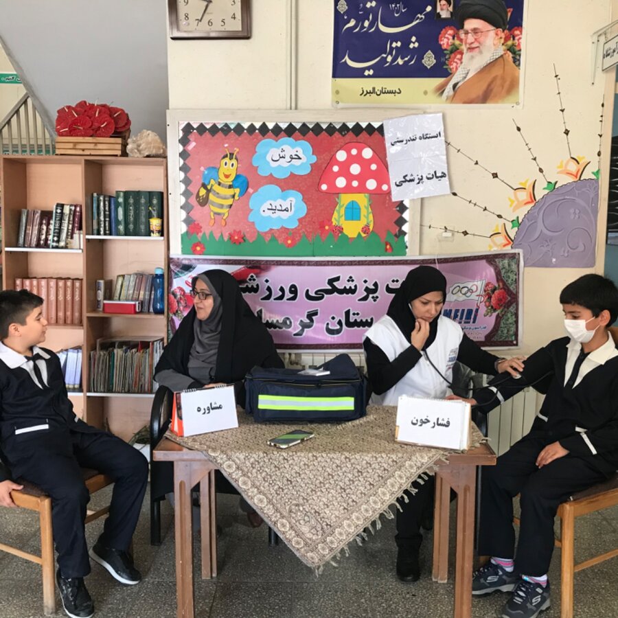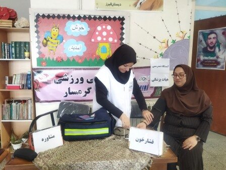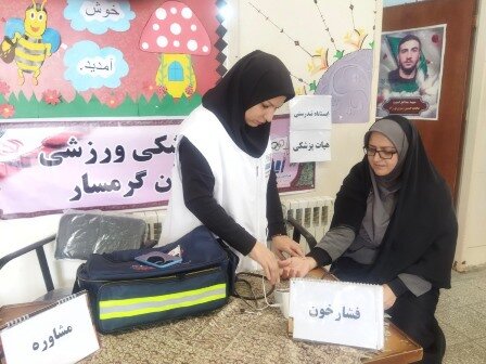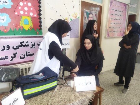 به منظور ارائه خدمات رایگان ،فشارخون و مشاوره توسط هیات پزشکی ورزشی گرمسار در دو پایگاه مدرسه دخترانه خدیجه و مدرسه پسرانه البرز