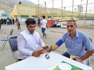 به مناسبت هفته تربیت بدنی و ورزش ایستگاه رایگان تندرستی در حاشیه مسابقه فوتبال بین تیم های خیبرخرم آباد و خوشه طلایی در محل ورزشگاه تختی خرمآباد ایستگاه تندرستی برپاشد.