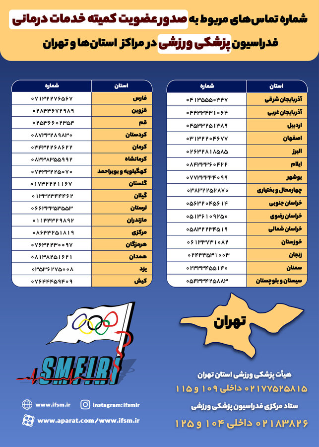 شماره تماس های صدور عضویت کمیته خدمات درمانی فدراسیون پزشکی ورزشی