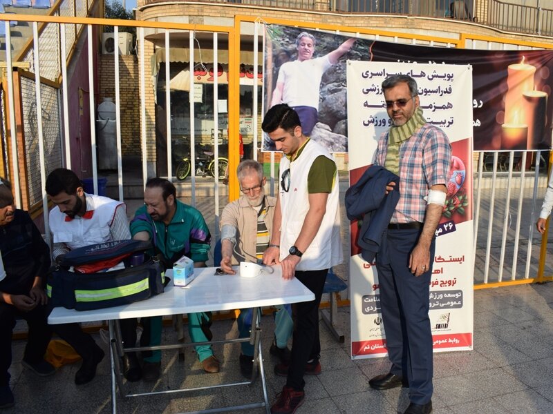 ششمین طرح سراسری ایستگاه رایگان تندرستی به منظور ارائه خدمات رایگان از جمله فشارخون، تست قندخون و مشاوره به ۴۸۰ نفر در سه نقطه از شهر، بوستان نرگس- مجموعه حیدریان و مصلی همزمان با سراسر کشور در استان قم انجام شد