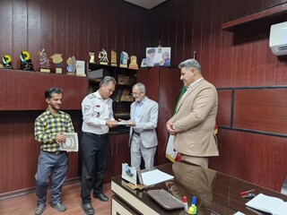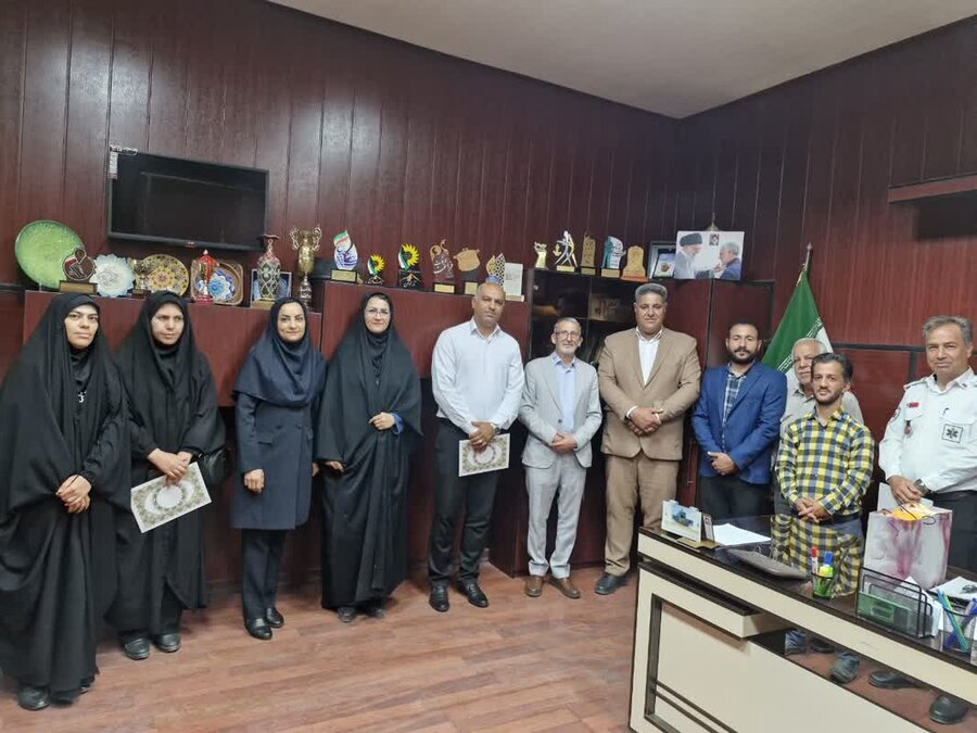 دکترحیدریان به همراه هیات همراه ضمن بازدید از هیات پزشکی ورزشی این شهرستان و اعطای احکام هیئت رئیسه آرادان، از میثم محسنی رئیس اداره ورزش و جوانان آرادان بابت همکاری و تعامل با هیات شهرستان و مهتاب شاه حسینی رئیس اسبق هیات پزشکی ورزشی آرادان تقدیر و تشکر به عمل آورد.