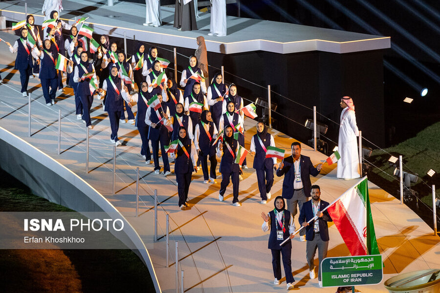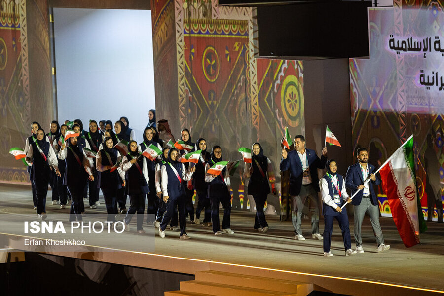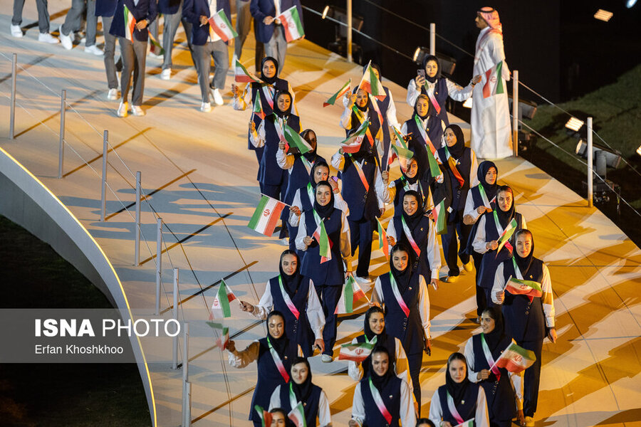 اعضای کاروان ورزش ایران در مراسم رژه بازی‌های همبستگی کشورهای اسلامی-ریاض